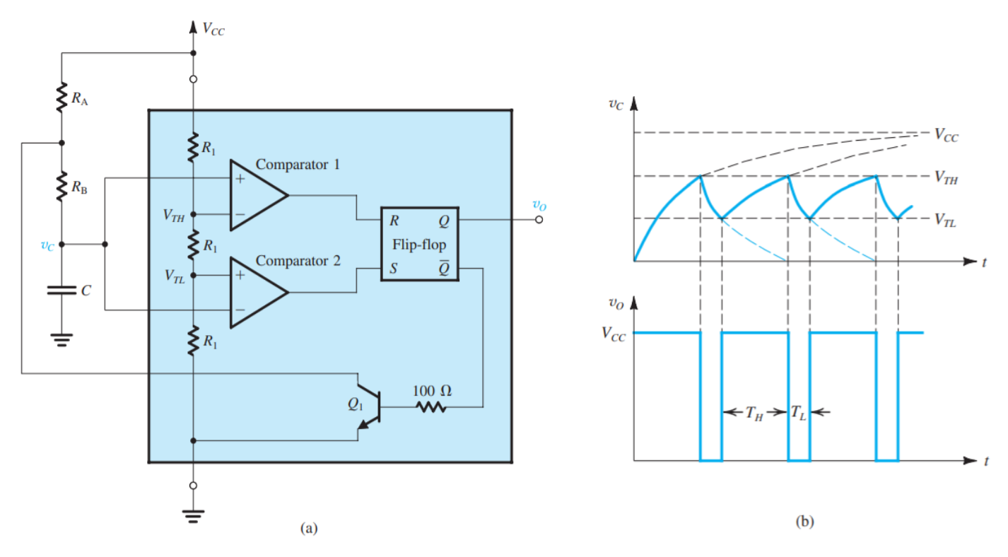 Figure 1: Internal component behavior of 555 timer, sourced from [1].
