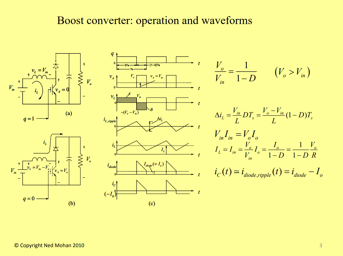 Equations and output waveforms of a boost converter’s behavior can be seen in the figure below (Figure 6):
