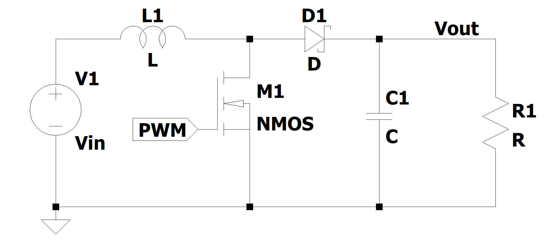 Figure 5: General circuit schematic for a boost converter.