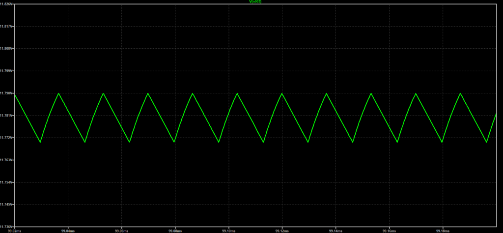 - Figure 20: Ripple behavior of the output voltage. at a duty cycle of 56.2% (blue).