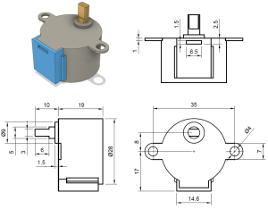 To ensure that our 28BYJ-48 stepper motor will fit onto our 3D printed mount, we have to acquire the dimensions of our motor. Using the internet, I found an image of the stepper motor’s dimensions on www.cookierobotics.com/042. We will save this image onto our computer, and we will be using it the design process.