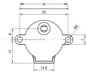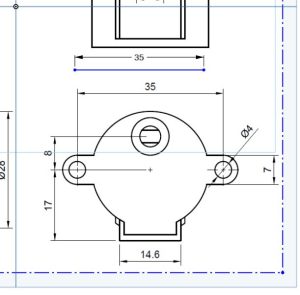 In the image below, I followed the line that labels the distance between the two mounting holes, which are 35 millimeters apart, and created a line that measures the same measurement.